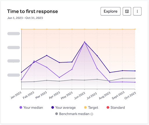 Hackers are more likely to engage with programs that respond promptly, as faster response times lead to higher engagement and satisfaction. The Time to First Response chart measures how quickly your team addresses reported vulnerabilities on the HackerOne platform.