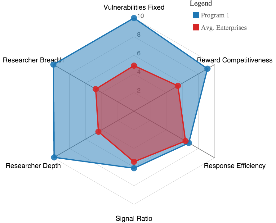 Simply put, to be a thriving program, you need to receive and resolve vulnerability reports. The most successful programs also receive a wide array of vulnerability types across different security aspects. Performance in the other indexes will affect the volume and quality of vulnerabilities fixed.