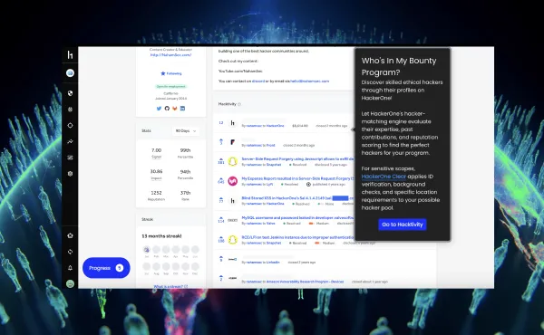 HackerOne matches you with thoroughly vetted, top-notch security talent from our global community of 2M+ hackers. 91% of HackerOne customers say hackers provide more impactful and valuable vulnerability reports than AI or scanning solutions.